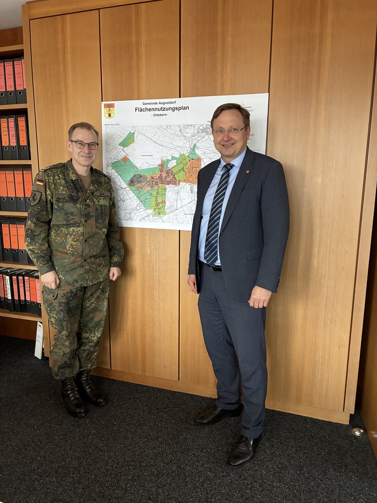 Bürgermeister Dr. Andreas J. Wulf begrüßte ihn herzlich in Augustdorf, wünschte alles Gute in der neuen Verwendung und stellte die Sennegemeinde mit ihren Besonderheiten und Bedarfen vor. Er hob die enge Verbundenheit Augustdorfs mit dem Bundeswehrstandort und der Brigade hervor.